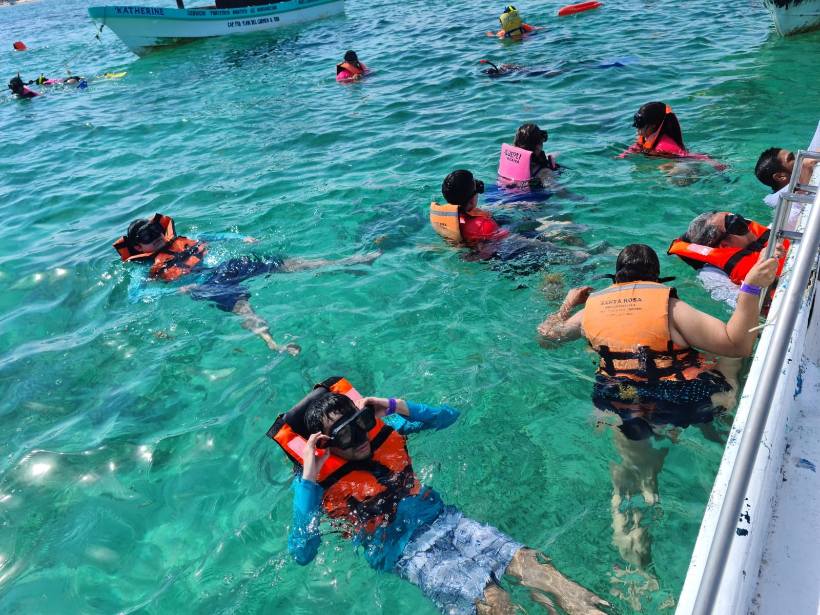 Cuando llegamos al arrecife todos bajaron gustosos a nadar. Yo me quede en la lancha con un poquito de temor por aquello de mi marcapasos. No estaba seguro de que pasaría si me esforzaba mucho nadando. Me imaginaba que si se activaba me iba a llevar de encargo a quienes estuvieran cerca de mi. Me puse a tomarles fotos.