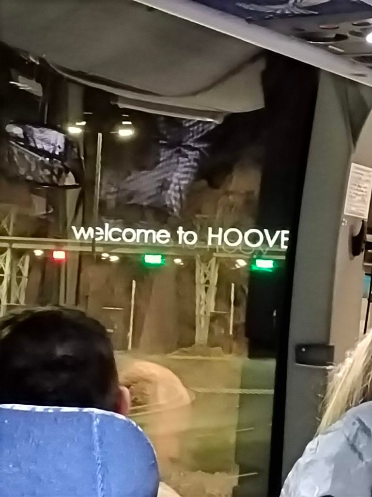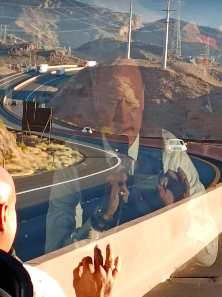 Llegamos a una caseta de cobro. Unas estructuras metálicas sostenían anuncios luminosos con la leyenda “welcome to Hoover Dam.” Esos camiones turísticos parecen tener entrada libre, pero deben haber alto como todos los vehículos. Avanzamos y llegamos al mirador. Bajamos a tomar fotografías en una zona fría, con viento y muy lejos.