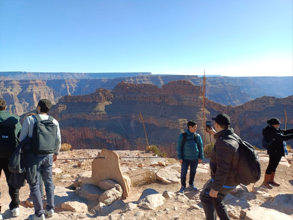 Transcurrida una hora más, la más aburrida porque Pasquale dejo de hablar, llegamos al sitio de observación del gran cañon: el Eagle Point. Antes de bajar, el chófer dió instrucciones muy precisas: «Se van a ir en grupo, todos juntos, ¿esta claro?»