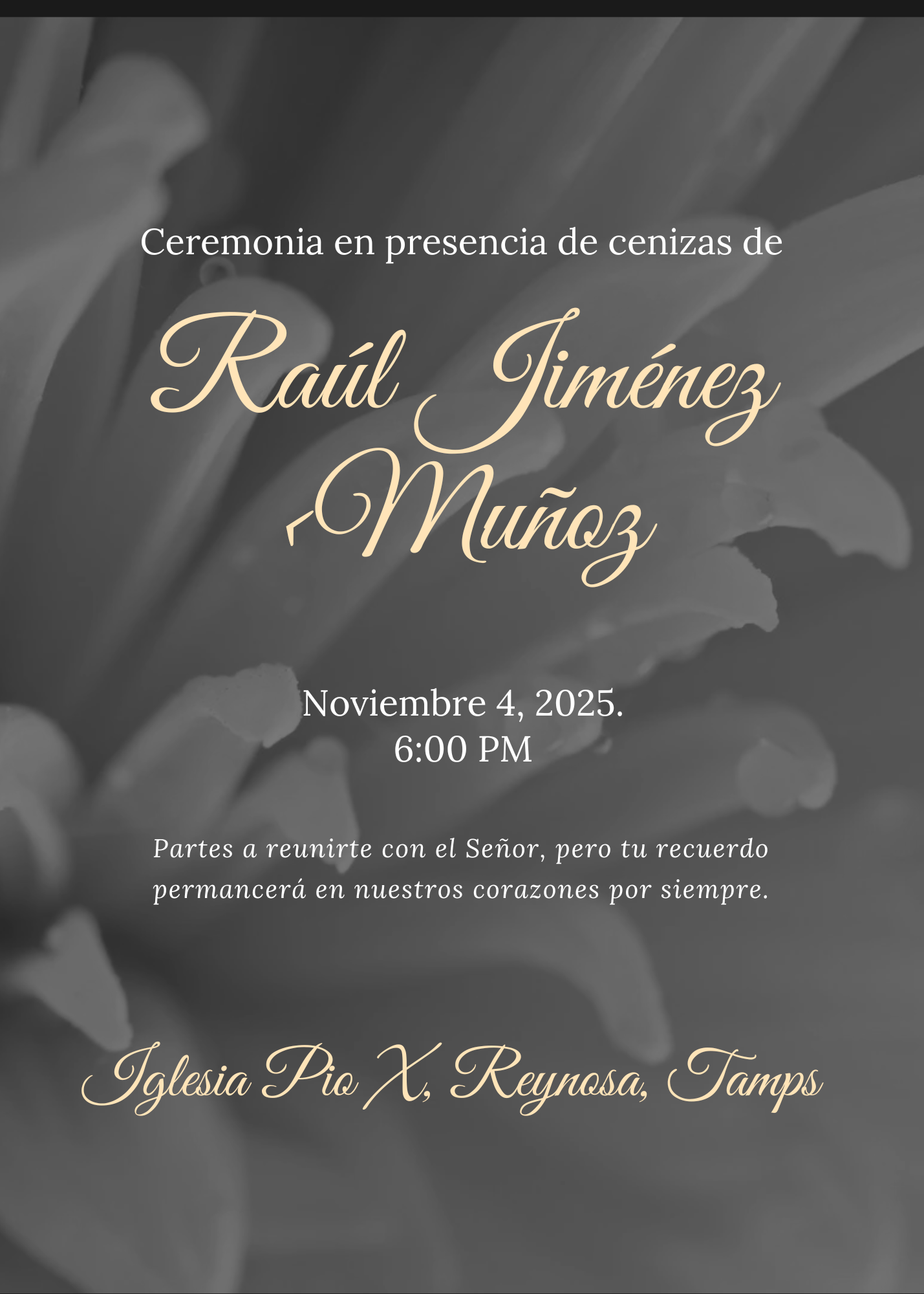 Elegía para Raúl Jiménez Muñóz, un hombre fuerte y estricto que parecía ser el más insensible, pero que en realidad tenía un corazón tan grande como grande era él.